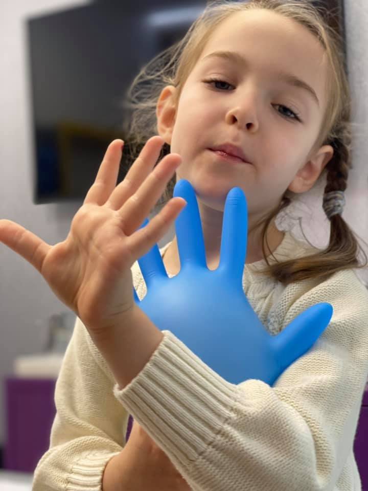 - Załóż rękawiczkę na rączkę Dziecka, która nie jest rączka dominującą.
