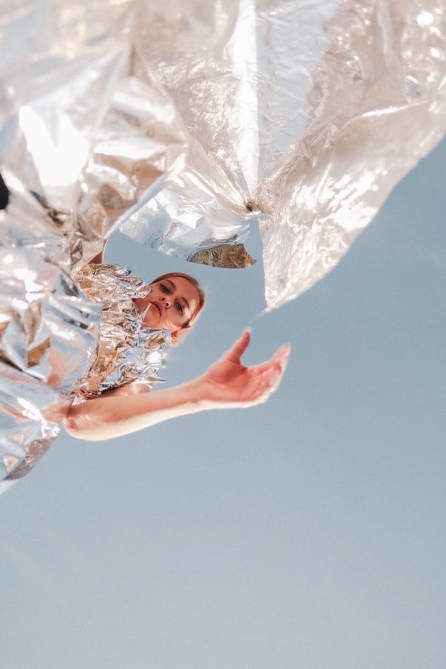 - Nałóż delikatnie folię na twarz i ciało dziecka w kierunku podłogi albo stołu. W przypadku młodszych Dzieci nazwij każdą część ciała gdy ją dotykasz i formujesz na niej folię aluminiową