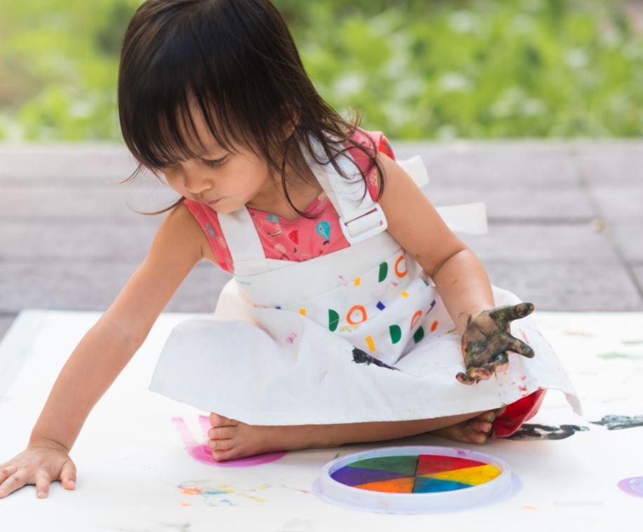 - Przyklej biały papier do ściany tak aby znajdował się na tym samym poziomie co głowa Dziecka.