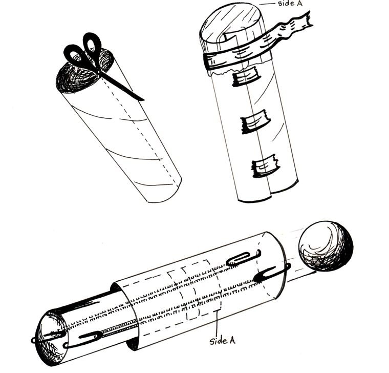 - Pomóż Dzieciom ponownie skleić rolkę, tak aby była na tyle wąska, aby wpasowała się wewnątrz drugiej rurki.